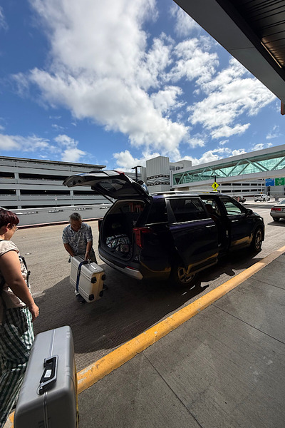 ハナタクシーはクルマがキレイで良いです。現金で35ドルフラット。カードだと税金とカード手数料が追加されて高くなります。出国審査に向かいます。免···